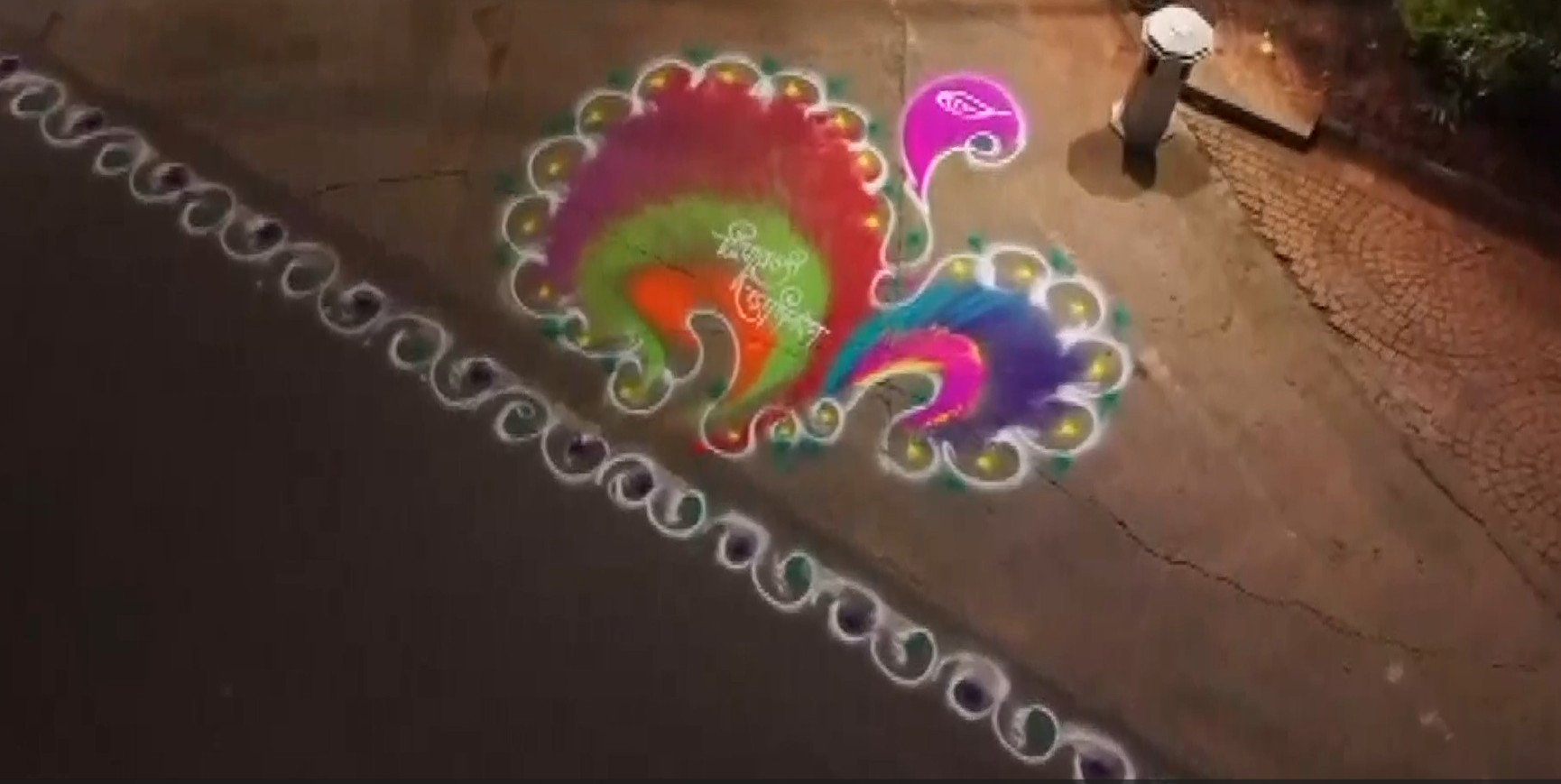 The rangoli, made using traditional designs and bright colours, is part of the temple’s preparations for the grand celebration of Deepotsav.